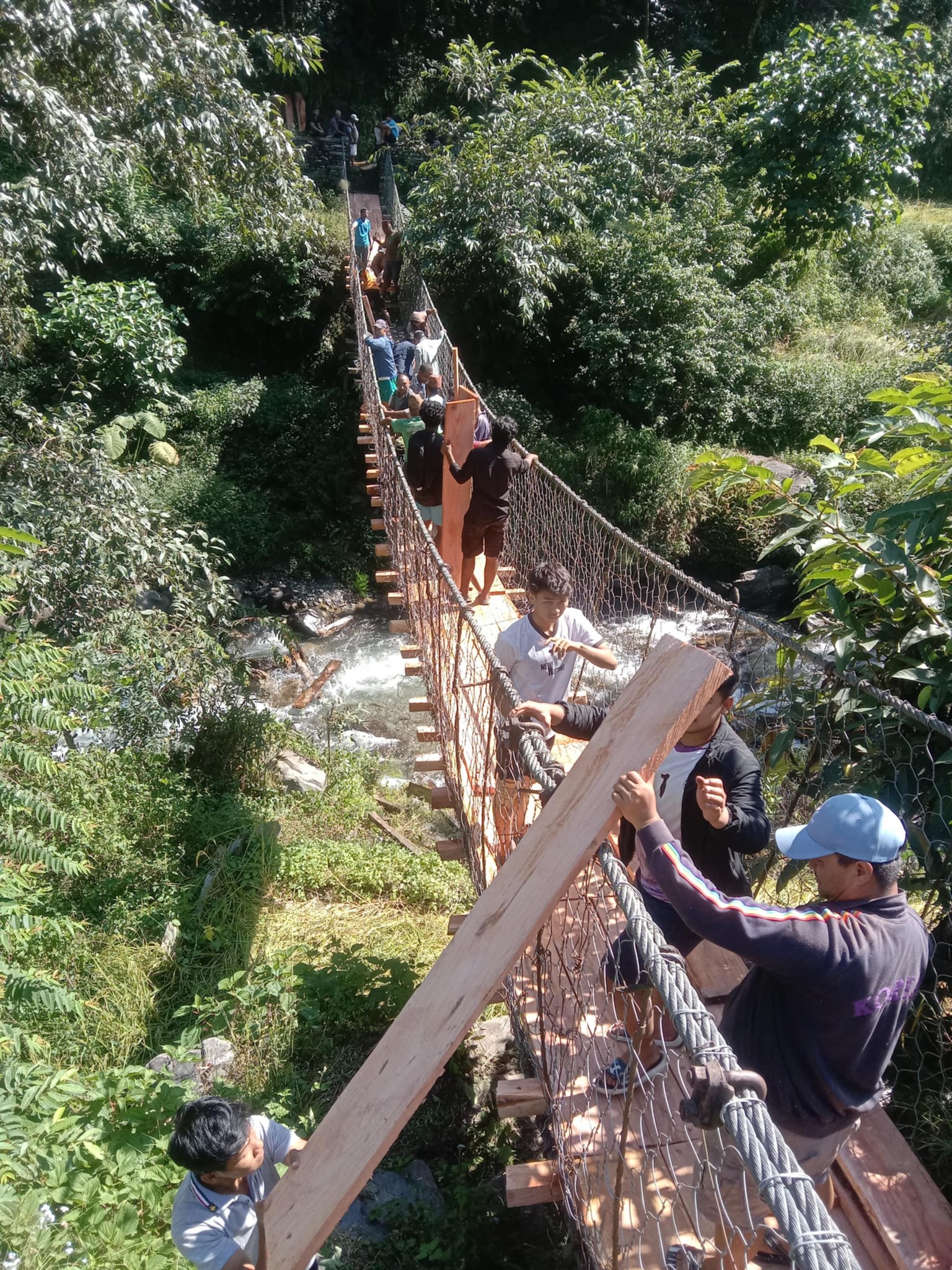 बेनी । म्याग्दीको बेनी नगरपालिका–४ र मङ्गला गाउँपालिका–३ को सिमाना अर्जेखोलामा रहेको झोलुङ्गे पुलको स्थानीयबासीले श्रमदानबाट मर्मत गरेका छन् ।