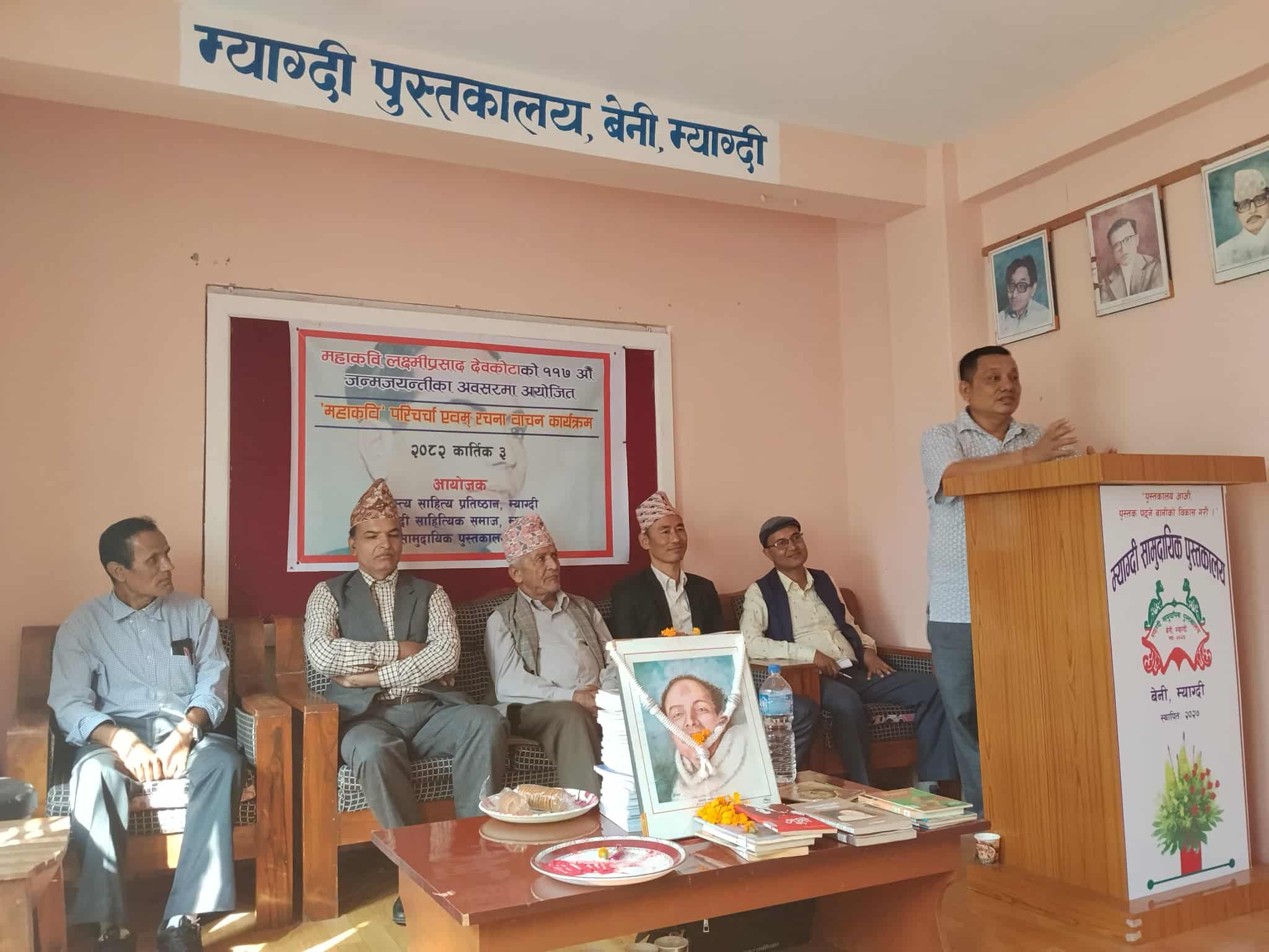 पुलस्त्य साहित्य प्रतिष्ठान, म्याग्दी साहित्य समाज र म्याग्दी सामुदायिक पुस्तकालयको संयुक्त आयोजनामा सम्पन्न ‘देवकोटा परिचर्चा तथा रचना वाचन कार्यक्रम’ मा वक्ताहरूले देवकोटाको साहित्यिक योगदान, विचारधारा र मानवतावादी दृष्टिकोणबारे समीक्षा गरेका थिए ।