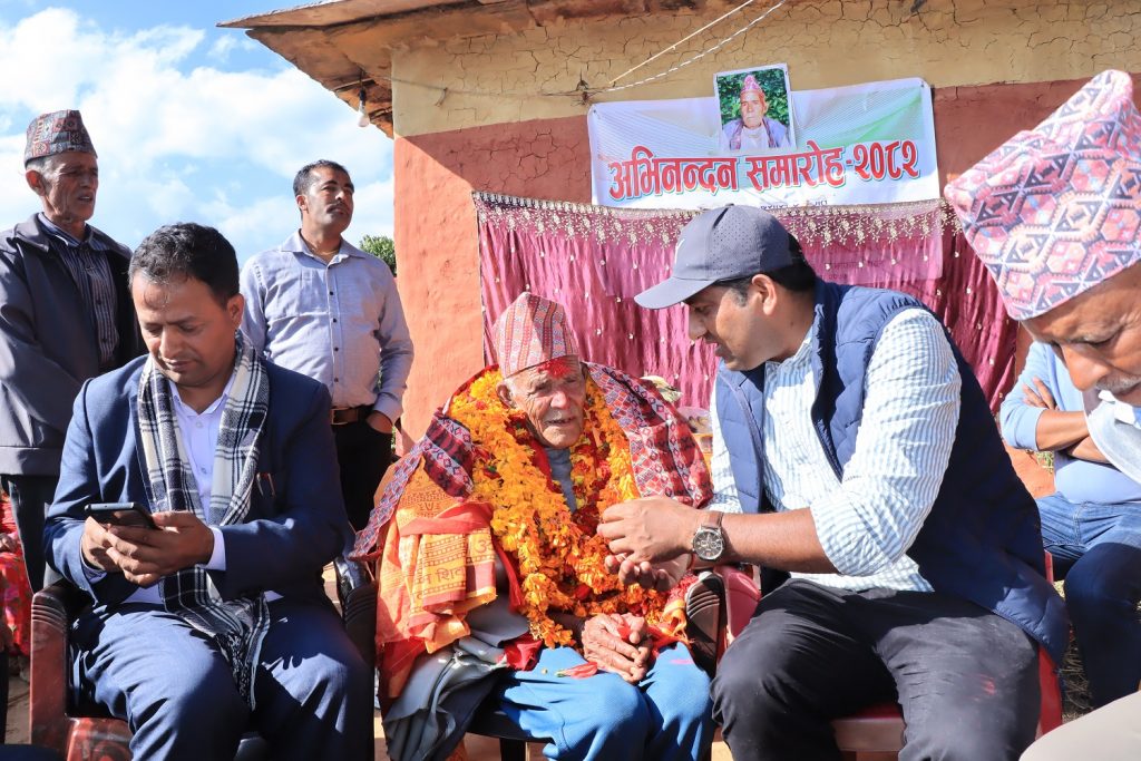 उहाँको अनुहारमा चमक हुनुको एउटै कारण हो आफ्नै आगँनमा जनप्रतिनिधी, छिमेकी र परिवारका सदस्यहरुको उपस्थितिमा एक सयौ जन्मदिन मनाउन पाउनु । जलजला गाउँपालिका–२ ओखरबोटका जिसीले सम्मानपछि खुलेर मनको कुरा र जिवन भोगाईका अनुभव सुनाउनुका साथै भलाकुसारी गर्नुभयो ।