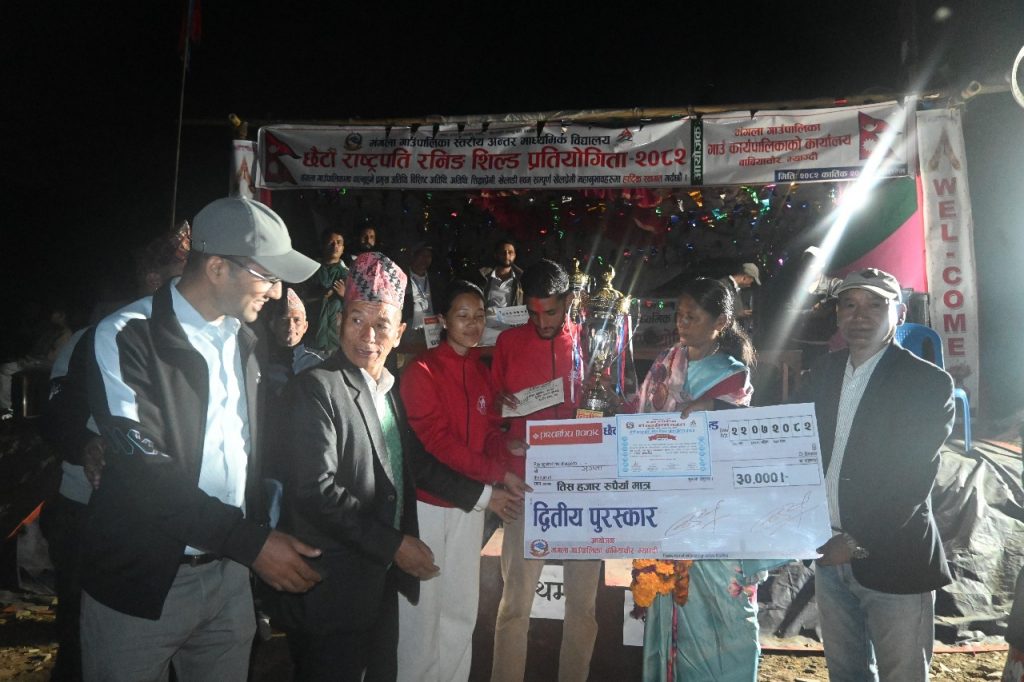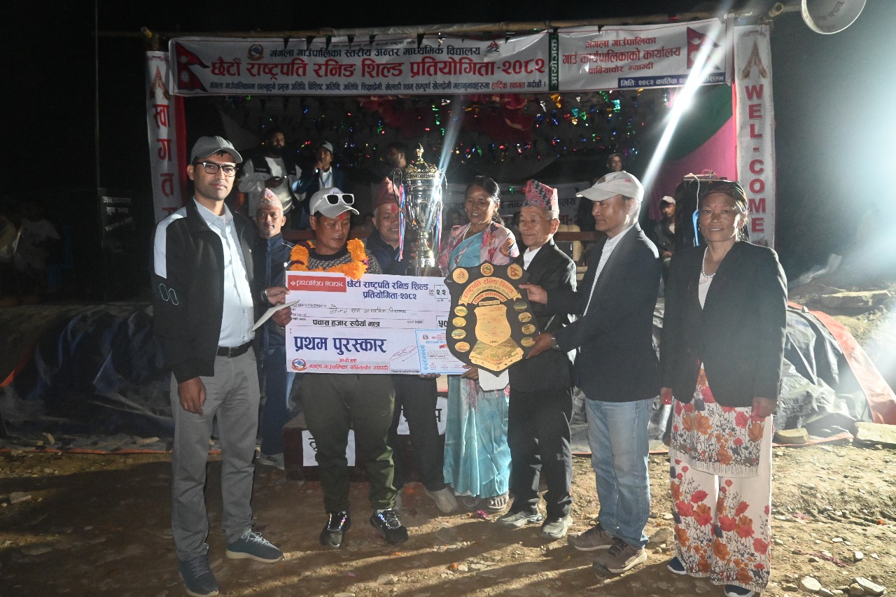 द्धितीय र तृतीय हुने विद्यालयलाई क्रमश ः नगद रु. ३० हजार र रु. २० हजारको साथमा ट्रफी, मेडल र प्रमाणपत्र प्रदान गरिएको छ । मङ्गला गाउँपालिकाका अध्यक्ष सतप्रसाद रोका, उपाध्यक्ष प्रेमकुमारी क्षेत्री, प्रमुख प्रशासकीय अधिकृत मदन अर्याल, वडा अध्यक्ष धनबहादुर खाती क्षेत्री लगायतले पुरस्कार वितरण गर्नुभएको थियो ।