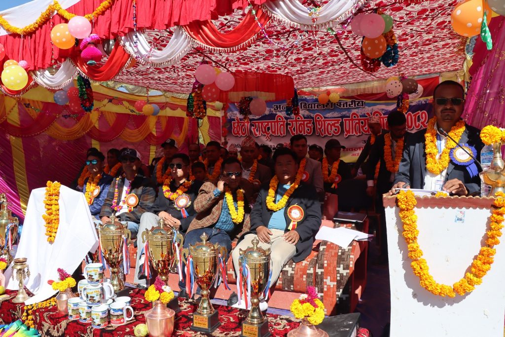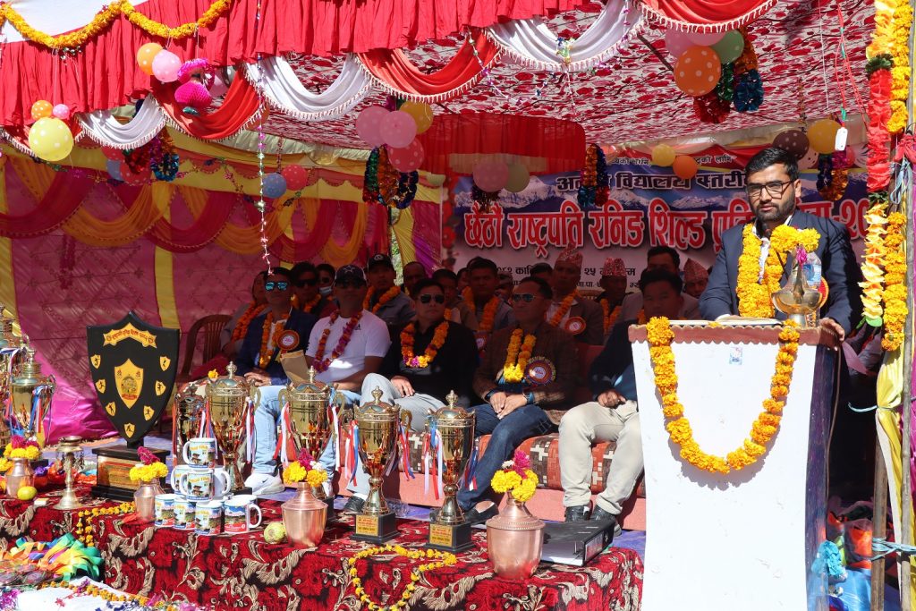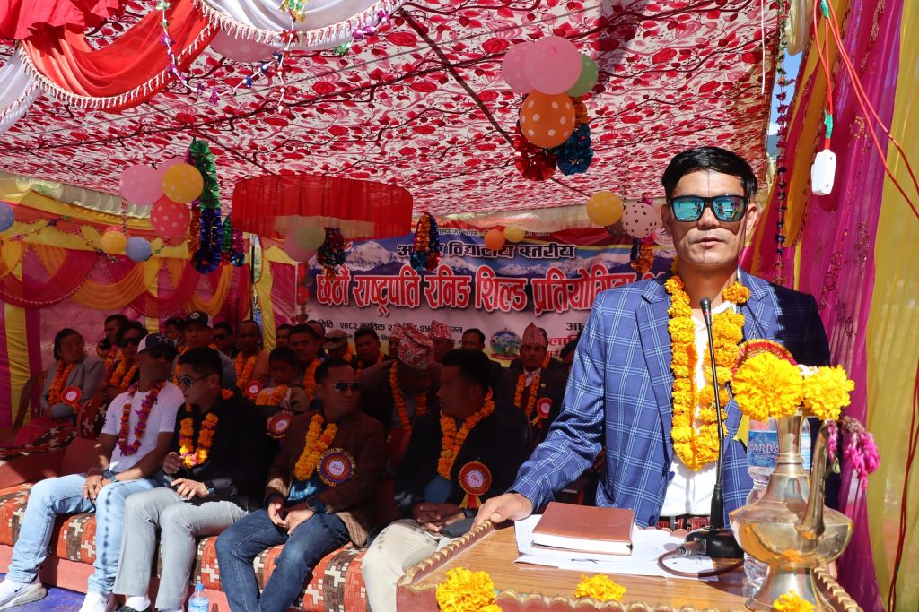 पालिकामार्फत नयाँ खेलाडीहरु उत्पादन, खेलकुद क्षेत्रको विकास र वृद्धिसँगै प्रतिभा पहिचान गर्न विभिन्न कार्यक्रमहरु आयोजना गर्ने उहाँले गरिएको बताउनुभयो । गाउँपालिकाका प्रमुख प्रशासकीय अधिकृत विष्णुप्रसाद शर्माले अनुशासनलाई विशेष ध्यान दिएर खेलाडी विद्यार्थीहरुले आफ्नो खेलको कला प्रदर्शन गर्नुपर्ने तथा प्रतियोगितामार्फत नयाँ प्रतिभाको उजागर गर्नका लागि सहयोग पुग्ने बताउनुभयो ।