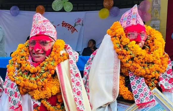 अविरले रंगिएको शिक्षकदयको गला मखमली फुुलको मालाले भरिएको थियो । बिदाईमा उपस्थितिले भावुुक हुुदै अबिरको टिका र फुलको माला लगाएका थिए । हेम नमुना माविका पुुर्व विद्यार्थी समेत रहेका गाउँपालिकाका अध्यक्ष पुनले शिक्षकद्धय पौडेल र सुवेदीले शैक्षिक क्षेत्रमा महत्पूर्ण योगदान पु¥याउनुभएको चर्चा गर्नुभयो ।