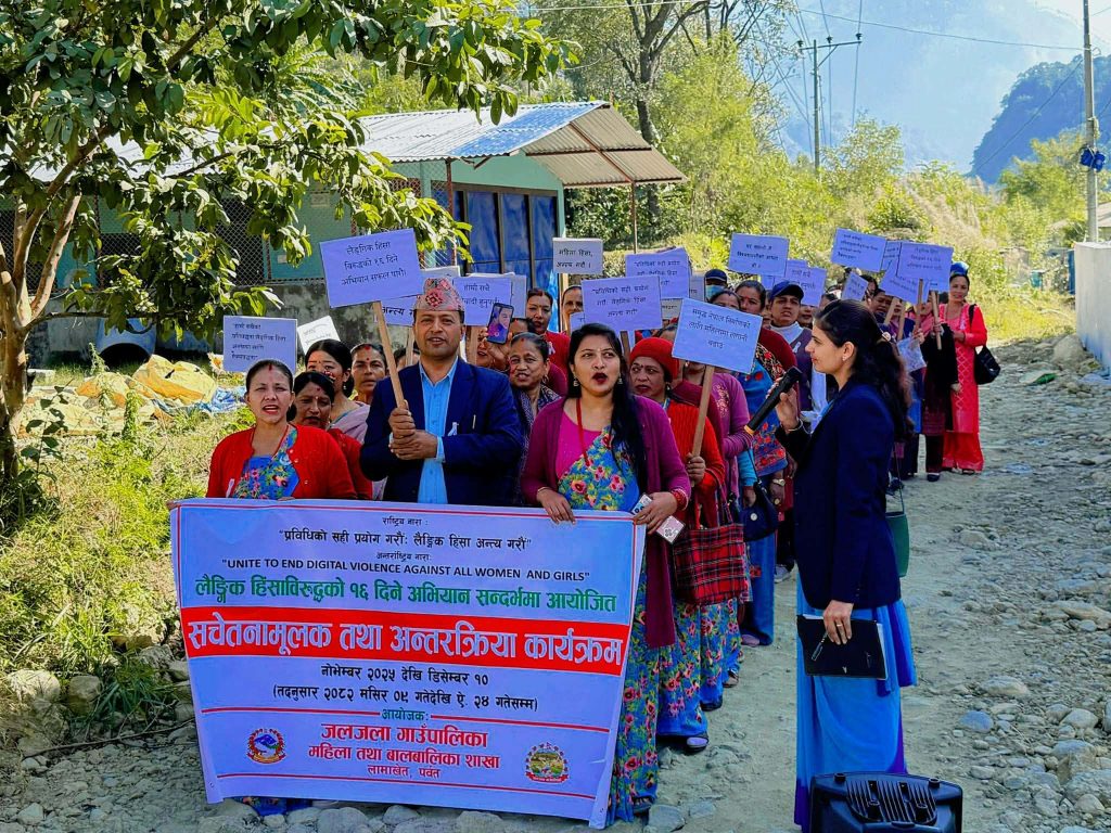 बेनी, । पर्वतको जलजला गाउँपालिकाको केन्द्र लामाखेतमा मंगलबार लैंगिक हिंसा विरुद्धको १६ दिने अभियानको सन्दर्भमा ‘प्रविधिको सही प्रयोग गरौ, लैगिंक हिंसाको अन्त्य गरौ’ भन्ने नारासहित सचेतनामुलक अन्तरक्रिया कार्यक्रम सम्पन्न भएको छ ।