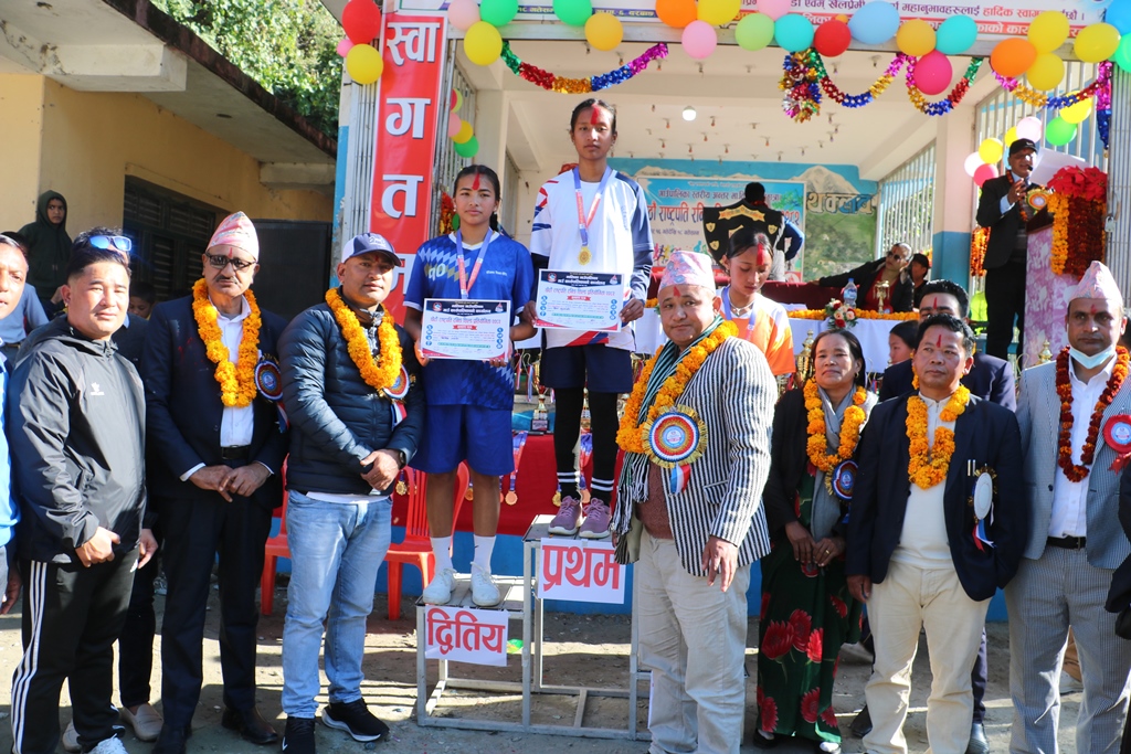 हाईजम्पअन्तर्गत छात्रतर्फ केबि एकेडेमीका दिपेश रोका र छात्रातर्फ किसानी माविका बन्दना घर्ती उत्कृष्ट हुनुभएको छ । प्रतियोगितामा प्रथम हुने विद्यालयले रनिङ शिल्ड, ट्रफी, मेडल र प्रमाणपत्रको साथमा नगद ५० हजार, द्वितीय र तृतीयले क्रमशः ४० हजार तथा ३० हजार रुपैयाँसहित ट्रफी, मेडल र प्रमाणपत्र पाउने गाउँपालिकाका शिक्षा अधिकृत अशोक रिजालले बताउनुभयो ।