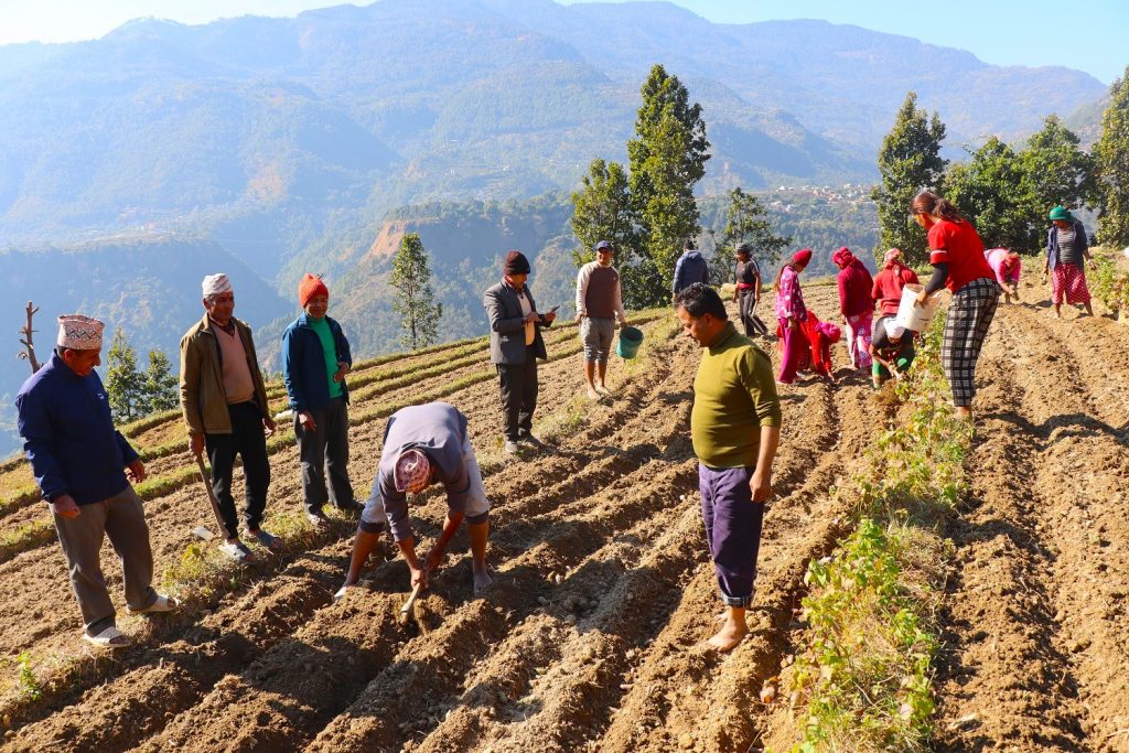 बेनी ः पर्वतको जलजला गाउँपालिका–७ बाँसबोटमा बाँझो जमिनमा सामुहिक आलु खेती गरिएको छ ।