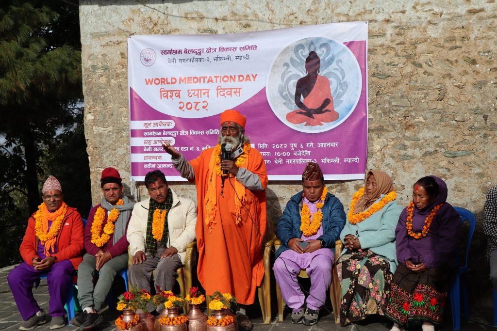 भकिम्ली, ः म्याग्दीको बेनी नगरपालिका–३ भकिम्लीको स्वर्गाश्रममा आइतबार विबिध कार्यक्रम गरेर विश्व ध्यान दिवस मनाइएको छ ।