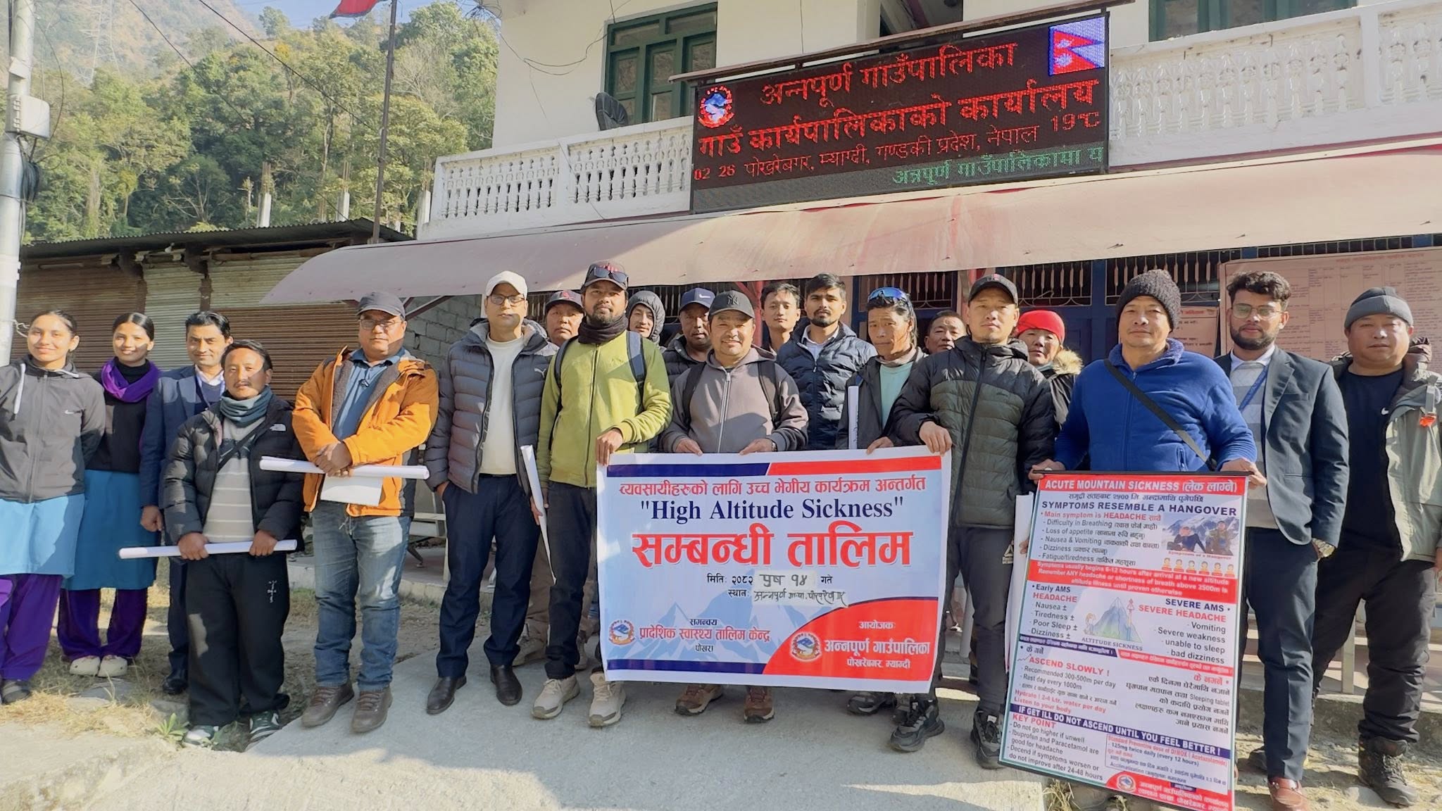 अन्नपूर्ण गाउँपालिकाले भौगोलिक रुपमा विकट र दुर्गम हिमाली क्षेत्रको पदयात्रा, भ्रमणमा आउने पर्यटक र स्थानीयबासीलाई अक्सीजनको कमीका कारण स्वास्थ्यमा समस्या आउँदा प्राथमिक र घरेलु बिधीबाट उपचार गर्ने तरिका सिकाएर जनशक्ति तयार पारेको हो ।