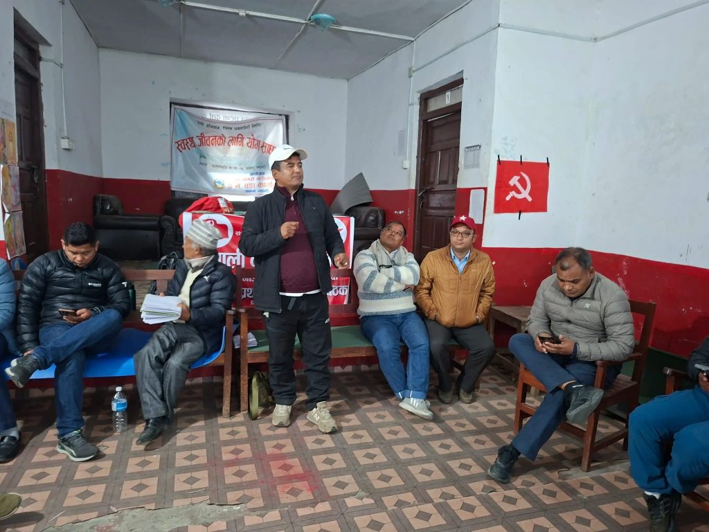 नेकपाका धवलागिरी गाउँपालिका कमिटि सचिव चक्र पुनले पहिलो चरणमा वडा तहका कार्यकर्ताहरुलाई समसामयिक राजनीतिक विषयमा पार्टीका धारणा जानकारी लिने र दोस्रो चरणमा टोल टोलसम्म पुग्ने गरि कार्यक्रम बनाएको जानकारी दिनुभयो ।