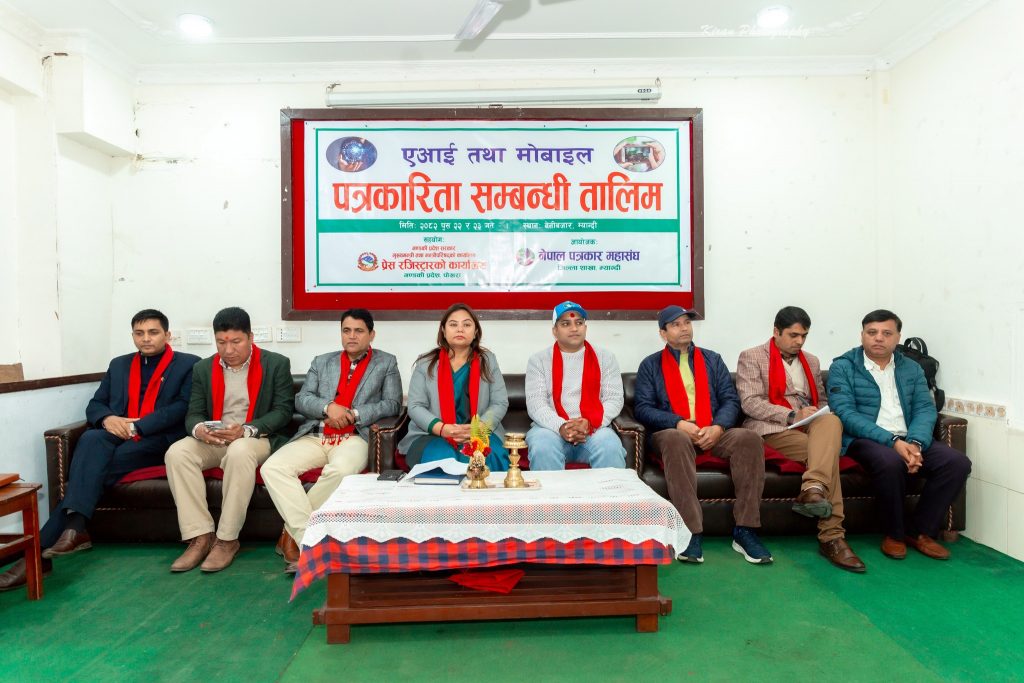 गण्डकी प्रदेशको प्रेस रजिष्ट्रारको कार्यालय र नेपाल पत्रकार महासंघ म्याग्दी शाखाको आयोजनामा दुई दिनसम्म बेनीमा सञ्चालन भएको ‘एआई’ र मोवाइल पत्रकारिता सम्बन्धी तालिममा सहभागि पत्रकार, सञ्चारकर्मी र सामाजिक सञ्जालका ‘कन्टेन क्रियटर’ (विद्युतीय सञ्चार सामग्री सिर्जनाकर्ता)हरुले घोषणापत्र जारी गरेका हुन् ।