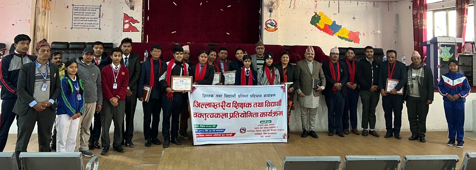 जिल्ला समन्वय समितिका कार्यवाहक प्रमुख डिलकुमारी खत्री र प्रमुख जिल्ला अधिकारी रविन्द्र आचार्य लगायतले पुरस्कार वितरण गर्नुभएको थियो ।