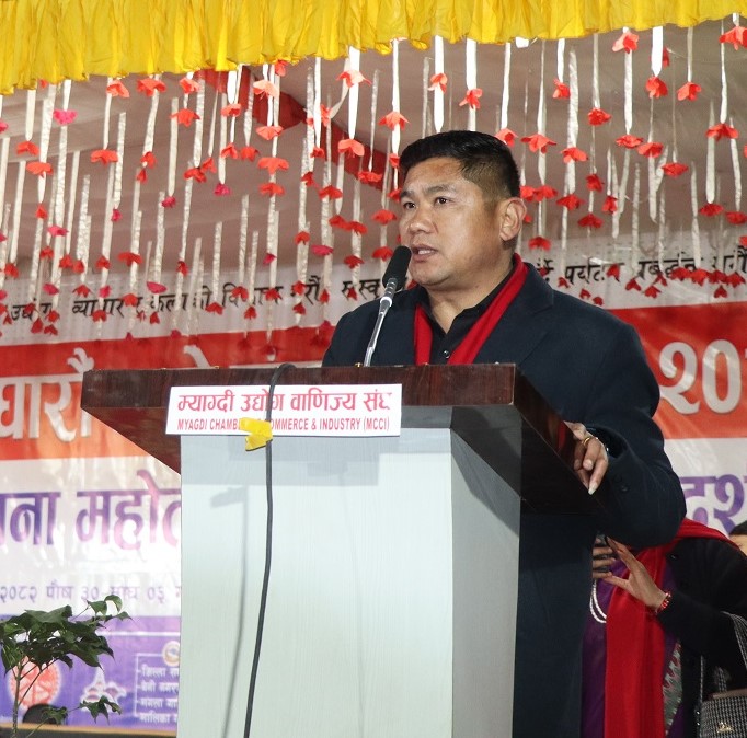 म्याग्दी उद्योग वाणिज्य संघ अन्तर्गतको महिला उद्यम विकास समितिको आयोजनामा शनिबार बेनीमा सम्पन्न ११ औ माघे संक्रान्ति मेला, खाना महोत्सव तथा कृषि मेला प्रर्दशनीको समापन समारोहलाई सम्बोधन गर्दै पूर्वाधारबाट लाभ लिन निजी क्षेत्रलाई आग्रह गर्नुभयो ।