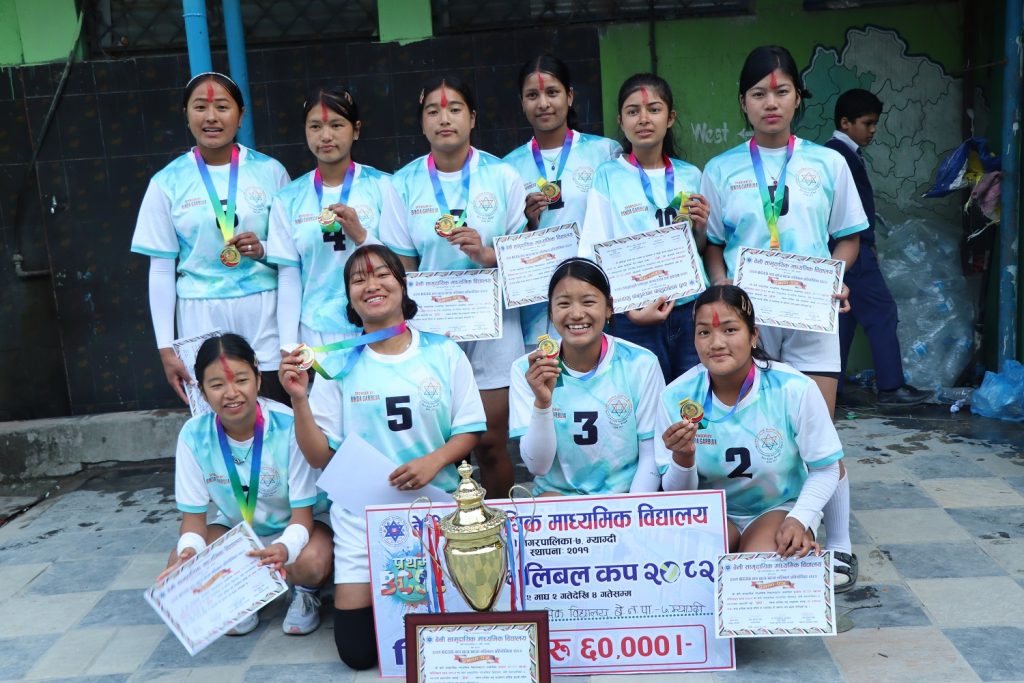 आठ विद्यालय सहभागी छात्रातर्फको फाइनलमा बेनी सामुदायिक माविसंग सोझो तीन सेटमा पराजित प्रकाश मावि उपबिजेता भएको छ । छात्र÷छात्रातर्फ बिजेता र उपबिजेताले ट्रफि, मेडल र प्रमाणपत्र सहित क्रमश ः रु. ६० हजार र ४० हजार नगद पुस्कार प्रदान गरिएको बेनी सामुदायिक माविका प्रअ भिम घर्तीले जानकारी दिनुभयो ।