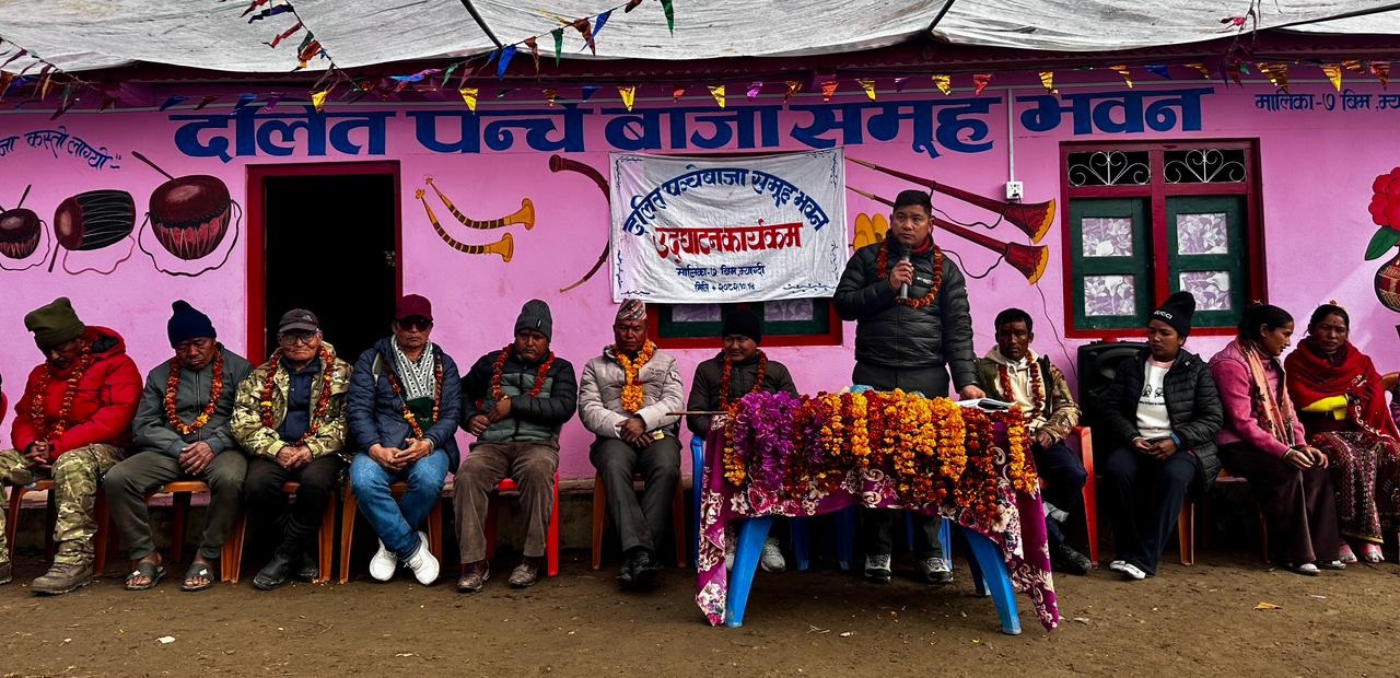 मालिका गाउँपालिकाको सहयोगमा दलित पञ्जेबाजा समूहले दुई कोठे बाजाघर निर्माण गरेका हुन् । समूहका अध्यक्ष रामबहादुर दर्जीले भवनमा मौलिक लोकबाजा भण्डारण, संरक्षण र तालिम सञ्चालन गरिने जानकारी दिनुभयो ।