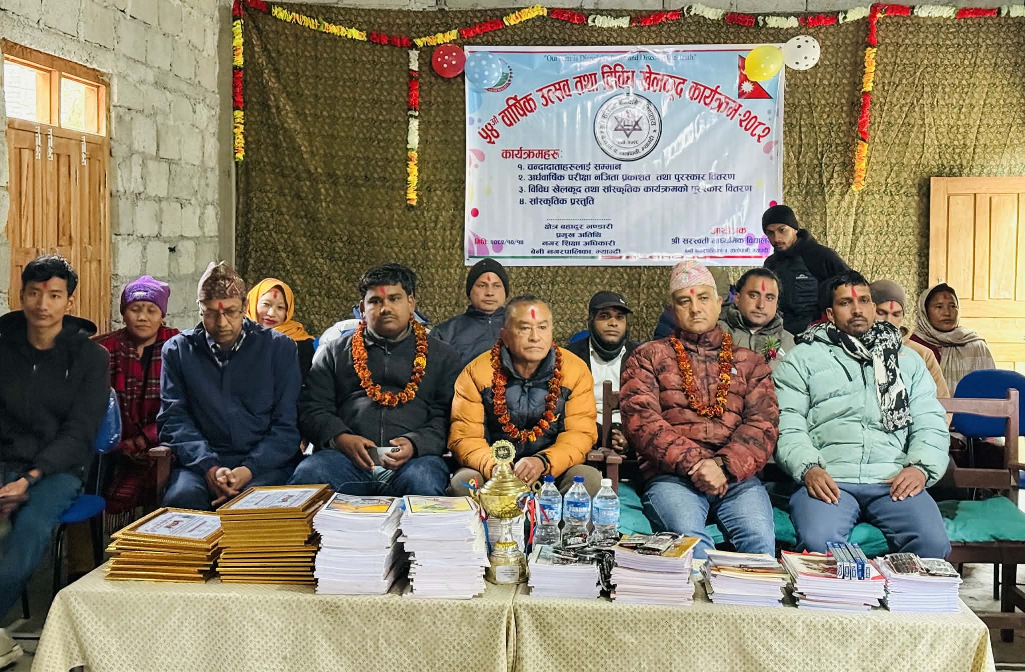 यही माघ ११ देखि १३ गतेसम्म खेलकुद कार्यक्रम भएको थियो भने १४ गते वार्षिकोत्सव मनाइएको शिक्षक दिनेश केसीले बताउनुभयो । विद्यालय ब्यवस्थापन समितिका अध्यक्ष बिरेन्द्रमान शाक्यको अध्यक्षता, बेनी नगरपालिकाका नगर शिक्षा अधिकारी क्षेत्रबहादुर भण्डारीको प्रमुख आतिथ्यता, वडा सदस्य केन खत्री (सन्दिप)को बिशिष्ट आतिथ्यता रहेको कार्यक्रममा प्रअ गुरुदत्त पौडेलले स्वागत र शिक्षक दिनेश विष्टले सञ्चालन गर्नुभएको थियो ।