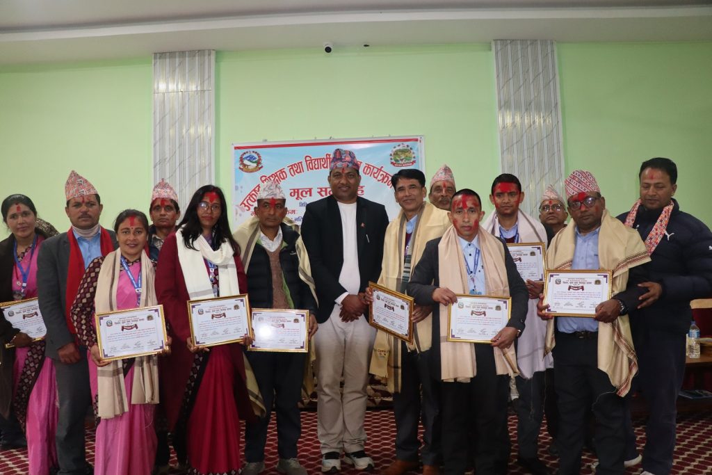 त्यसैगरी, सेवा निवृत्त तथा लामो समयसम्म शिक्षण सेवामा योगदान पु¥याएका शिक्षकहरूलाई दीर्घ सेवा सम्मान (दोसल्ला र सम्मानपत्र) प्रदान गरिएको थियो।