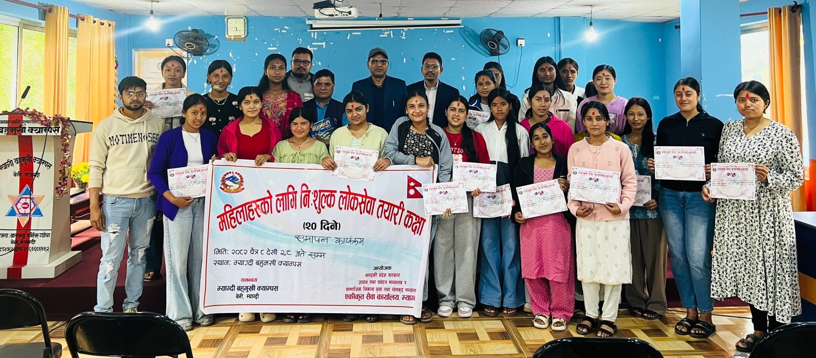 बेनी, ः महिलाहरुका लागि निशूल्क लोकसेवा तयारी कक्षा शनिबार बेनीमा सम्पन्न भएको छ ।